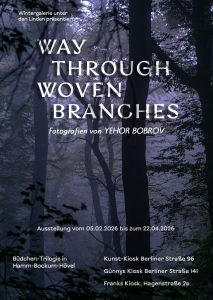 Deutlich mehr als 50 begeisterte BesucherInnenn waren gekommen, um die Einweihung der Ausstellung von Yehor Bobrov mit dem Titel „Weg durch gewebte Äste“ zu erleben. Darunter befanden sich über 20 junge, kreative Freunde des Fotografen aus ganz Europa, zehn ukrainische Frauen, die für das leibliche Wohl sorgten. Auch die